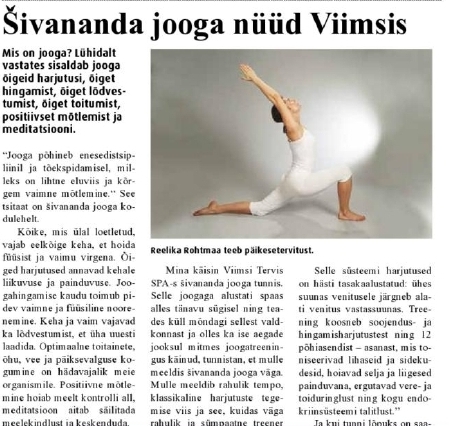 "Šivananda jooga nüüd Viimsis"