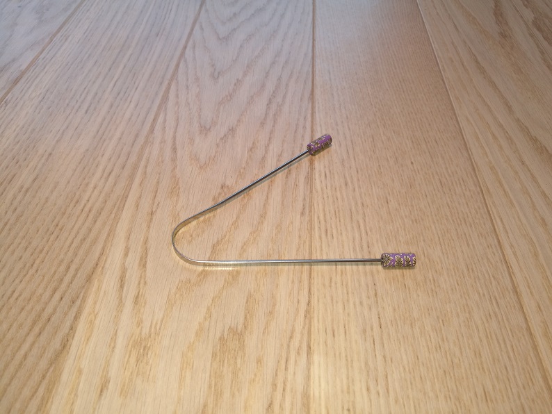 Keelepuhastaja on valmistatud käsitööna, kaare otsi kaunistavad värvilised nupud, millest on hea kinni hoida. Materjaliks on roostevaba teras.
